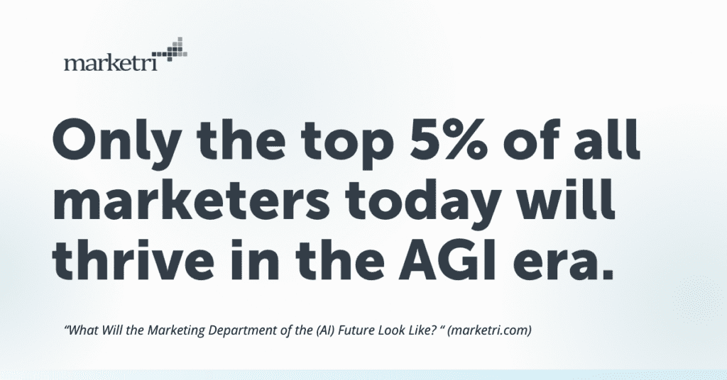 Only an elite group—the top 5% of all marketers today, in my opinion—will thrive in the AGI era. They’ll apply a deep understanding of strategic marketing principles, channels, tactics and measurement, along with strong business acumen and a keen grasp of how marketing intersects with the rest of the business. And they’ll use those capabilities to ask penetrating questions, synthesize AI-driven outputs, and creatively apply insights to generate better business outcomes.