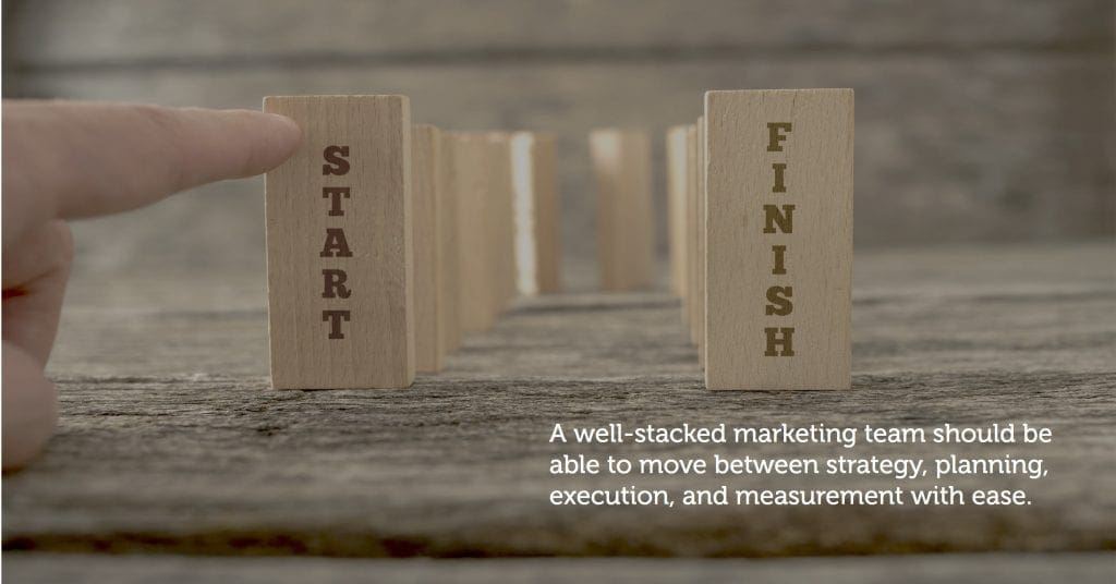 We know that most B2B organizations rely on smaller marketing teams, which are even smaller right now. However, the skill sets needed for attaining growth through marketing are wide and growing rapidly with technology. A well-stacked marketing team should be able to move between strategy, planning, execution, and measurement with ease. This includes the abilities to: