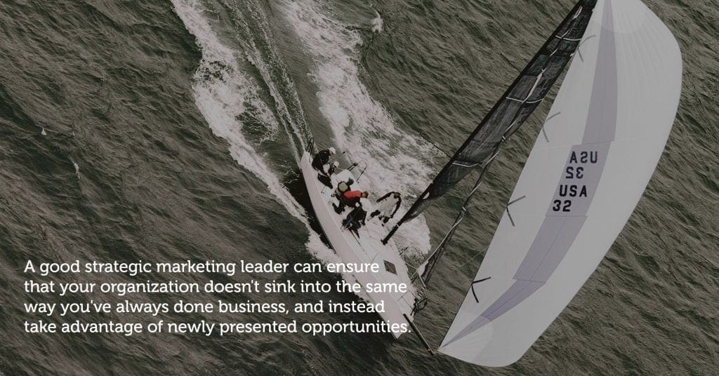 One of the hardest skills to find in marketing is a strategic leader. If you have one, keep them. Lean into them to drive the marketing function the right direction to become a profit-generating department. With them at the helm, they will not sink into what you’ve always done as a business, and they won’t let these new opportunities pass them by.